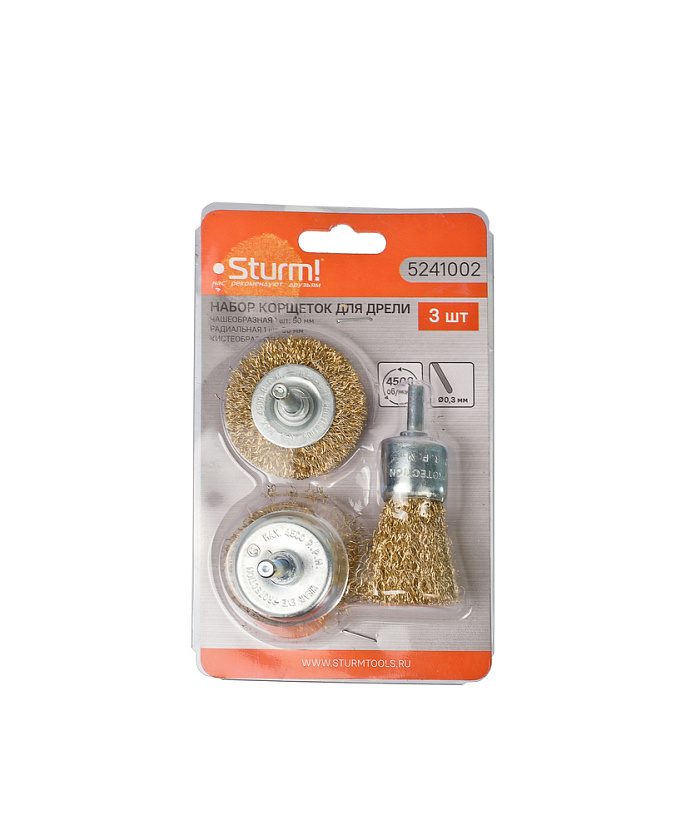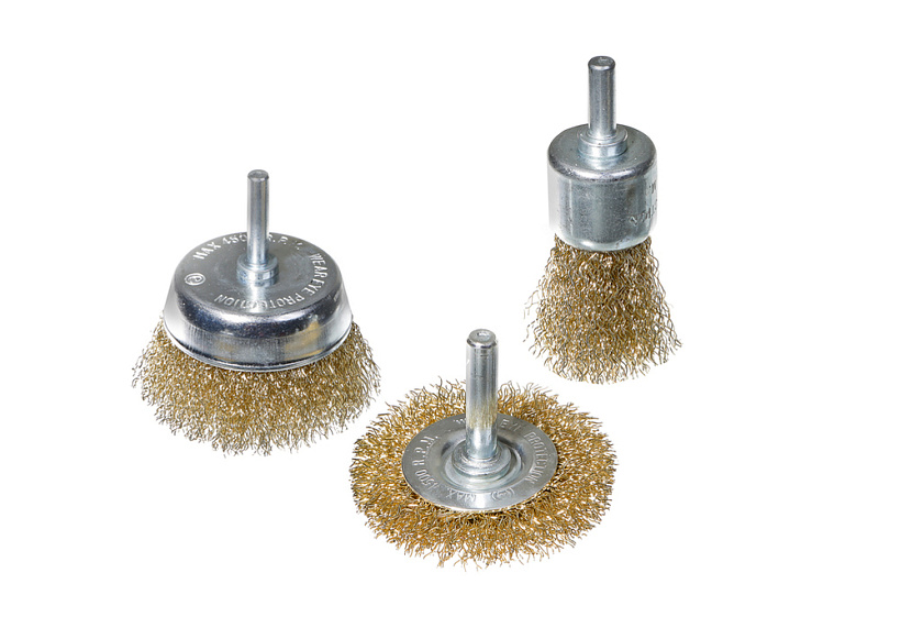 Используется для зачистки деревянных и металлических  поверхностей с помощью дрели в труднодоступных местах.  Рабочая часть состоит из стальной гофрированной проволоки.Хвостовик 6 мм для закрепления в патроне любой дрели. Состав набора : радиальная 50 мм, чашеообразная,  50 мм,  кистеообразная 25 мм. Диаметр проволоки -0,3 мм, упаковка-блистер