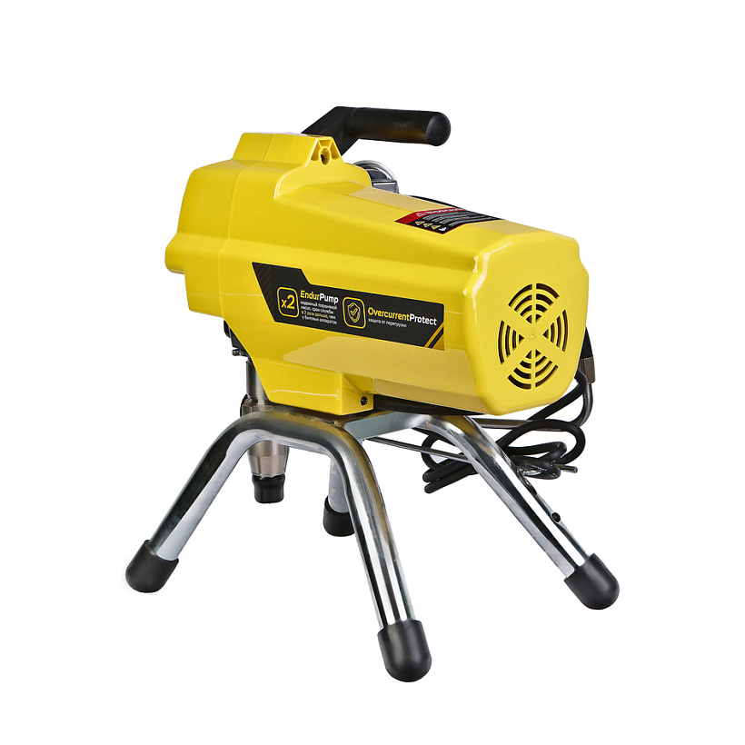 Дополнительный фильтр для очистки краски исключает частое засорение сопла. Надежный поршневой насос EndurPump в среднем служить в два раза дольше чем бытовые аналоги. Для долговечности электродвигателя применяется защита от перегрузки.