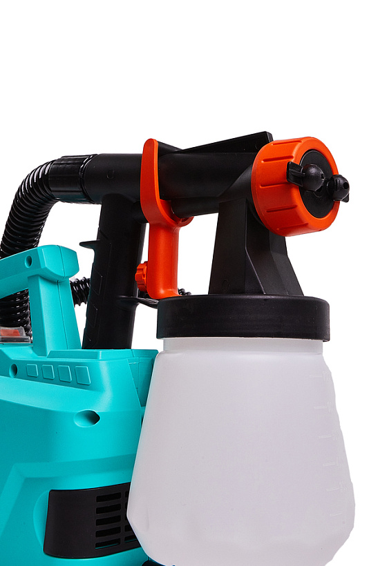 Краскораспылитель оснащен мощным 600 Вт электромотором, обеспечивающим высокую производительность (до 1100 мл / мин) и позволяющим эффективную работу с лакокрасочными материалами максимальной вязкостью до 50 DIN. Используемая технология покраски – HVLP (High Volume / Low Pressure) – характеризуется большим объемом воздуха и низким давлением – данное техническое решение гарантирует равномерное нанесение лакокрасочного материала, способствуя более высокому проценту его переноса на поверхность заготовки. Притом, потери на разбрызгивание и образование тумана остаются на минимальном уровне. В случае необходимости пользователь может настроить оптимальный для себя расход краски, а также установить нужный тип распыляемой струи: горизонтальный, вертикальный или круговой для комфортной работы в горизонтальной или вертикальной плоскостях.