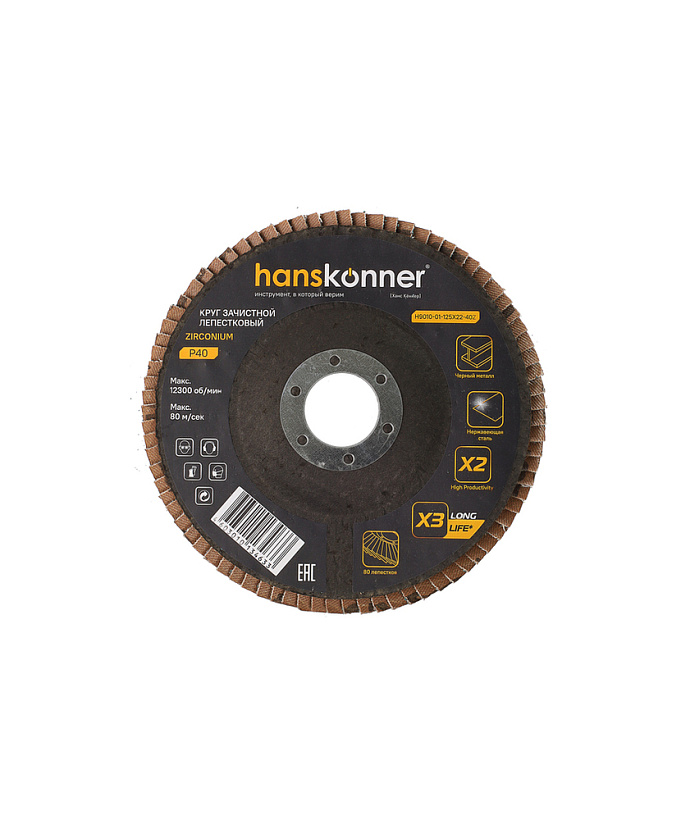 Круг зачистной лепестковый ЦИРКОНИЕВЫЙ 125х22, зерно 40, Hanskonner