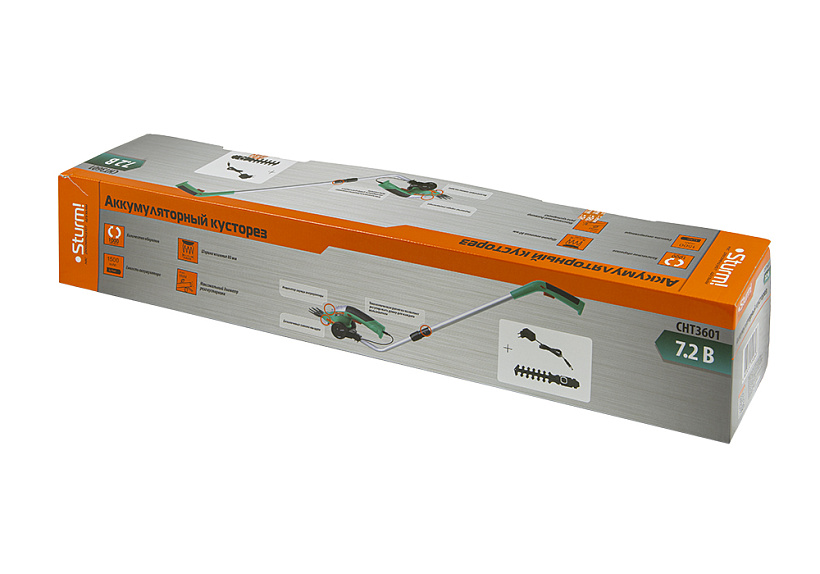 Мощный Li-ion аккумулятор напряжением 7,2 В позволяет выполнять целый спектр поставленных задач: формовка кроны, обрезка старых ветвей и стрижка.