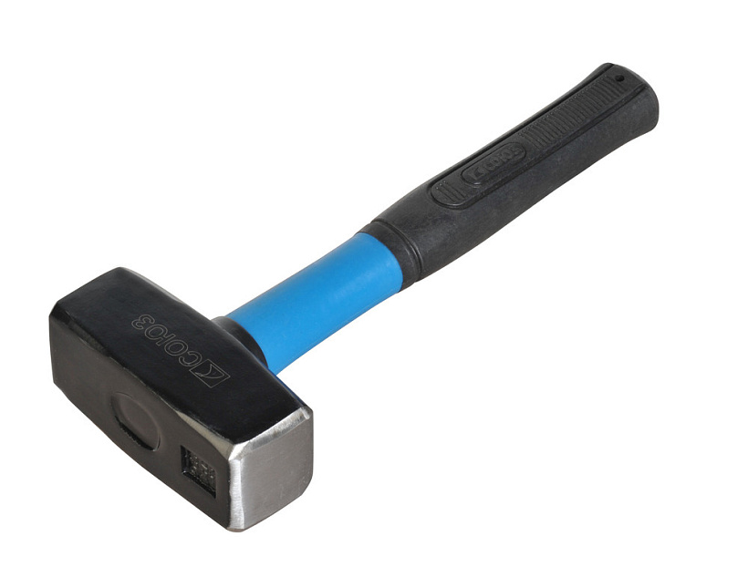 Кованая голова, шлифованные бойки, защита от раскола, обрезиненная фиберглассовая рукоятка аммортизирует удар и создает удобный захват.