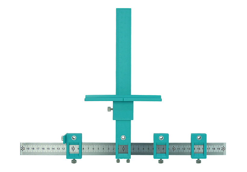 Линейка используется при ремонтных работах, разметке материалов для компоновки и копирования, переноса, стыковки сложных форм и профилей. Инструмент состоит из четырех линеек с прорезями, соединенных четырьмя винтовыми фиксаторами. Передвигая линейки относительно друг друга при отпущенных фиксаторах, можно легко сформировать нужную фигуру, после чего просто зафиксировать их положение.