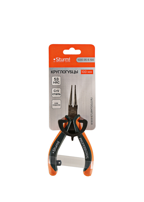 Круглогубцы, 100мм, TPR рукоятки, никелированные, Sturm!