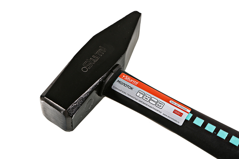 Молоток слесарный, 1000 г, кованный боек, фибергласовая рукоятка Sturm!