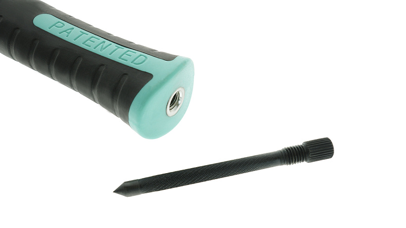 Уникальная запатентованная система крепления кернера позволяет хранить его прямо в рукоятке. Переход от основной работы к разметке и обратно стал максимально быстрым