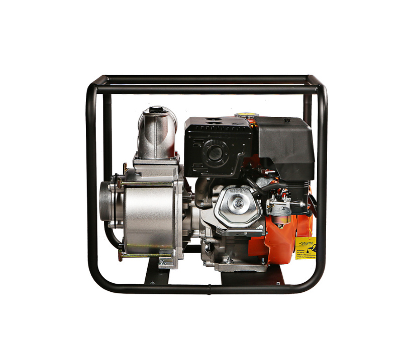 Бензиновая мотопомпа Sturm! BP8703TW с двигателем мощностью 15 л. с. и штуцерами диаметром 4 дюйма обеспечивает напор 20 м и применяется для откачки грязной воды со скоростью 835 л/мин из затопленных помещений, а также котлованов, траншей, погребов, колодцев глубиной до 7 м. Оптимальна для проведения земляных работ, т. к. может работать с грязной водой, содержащей фракции размером до 28 мм. Используется также для подачи чистой воды на стройку, небольшое предприятие, на дачный участок и в систему полива.