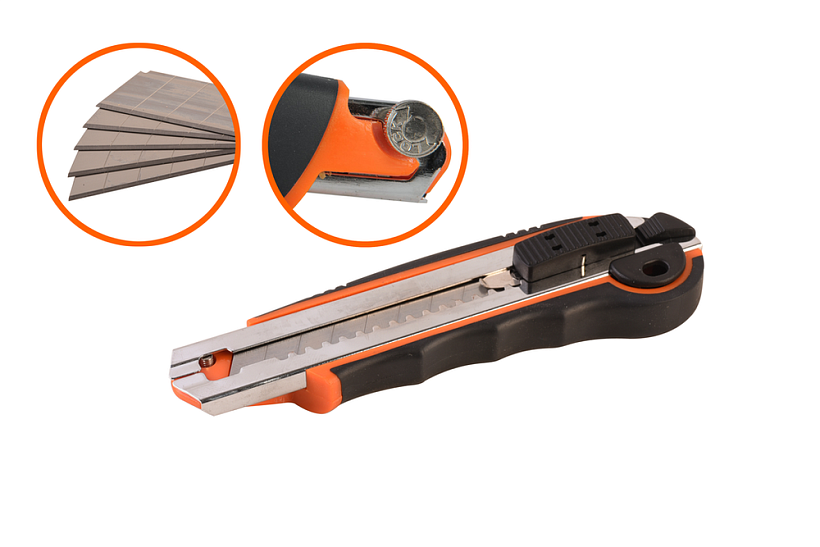 Нож строительный 18мм, 5 дополнительных лезвий, Sturm!