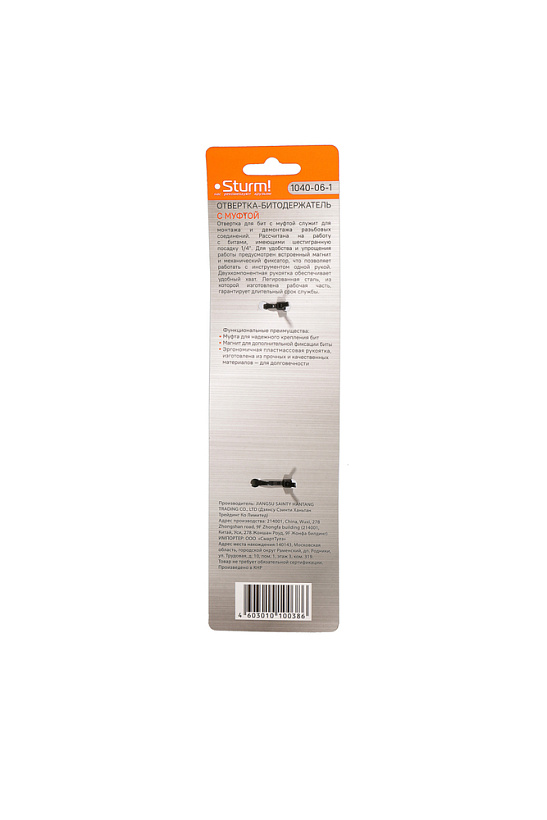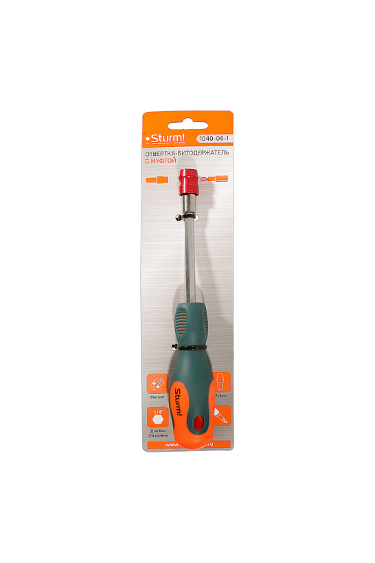 Отвертка-битодержатель с муфтой, магнитный наконечник, CrV, Sturm!