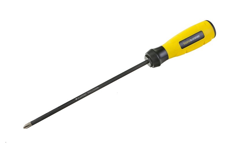 Отвертки имеют эргономичную двухкомпонентную рукоятку с рифлениями, исключающими проскальзывание, мягкая поверхность рукоятки делает работу комфортной. Рабочая часть выполнена из стали марки S2, наконечником с алмазным покрытием,что определяет ее прочность и износостойкость. Жало отвертки намагничено для удержания метизов при работе.