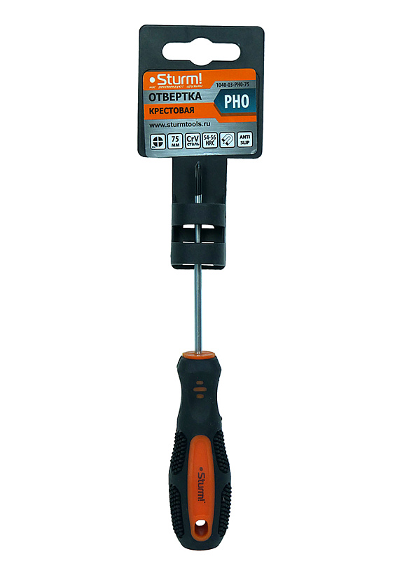 Отвертка крестовая PH0x75мм, CrV, магнитный наконечник Sturm!