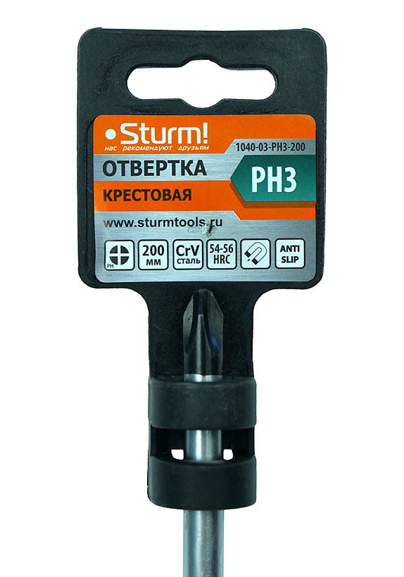 Отвертка крестовая PH3x200мм, CrV, магнитный наконечник Sturm!