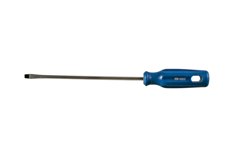 Эргономичная рукоятка из ПВХ с удобным отверстием для подвеса. Рабочая часть отвертки выполнена из высоколегированной хромованадиевой инструментальной стали и имеет высокую твердость и прочность, что определяет длительный срок службы инструмента.Возможно, вас заинтересует