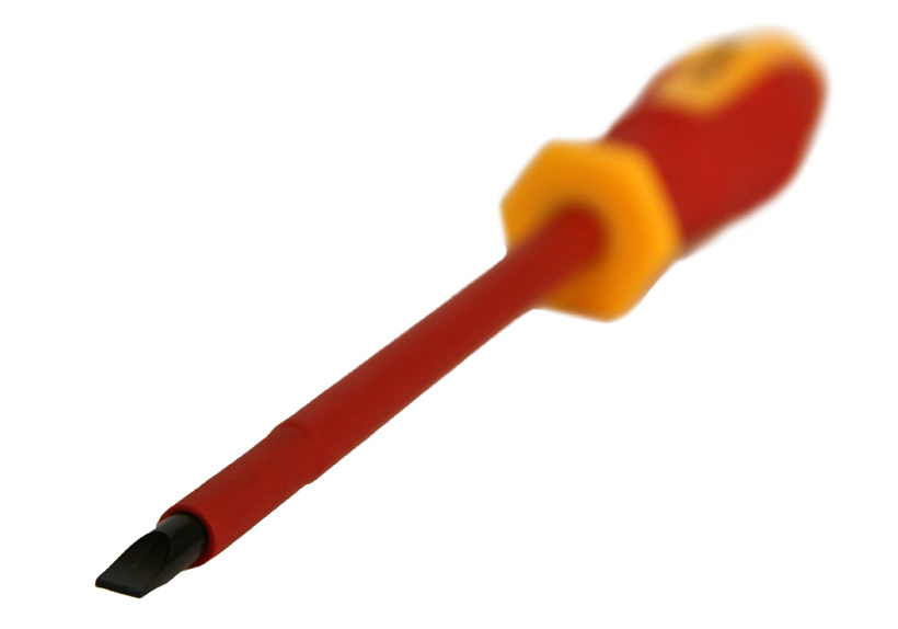 Отвертка Sturm! 1040-17-SL6-150 с многокомпонентной ручкой эргономичной ручкой. Отвертка для безопасной работы на оборудовании с максимально допустимым напряжением 1000 В. Многогранный край ручки для защиты от перекатывания отвёртки на рабочем месте.