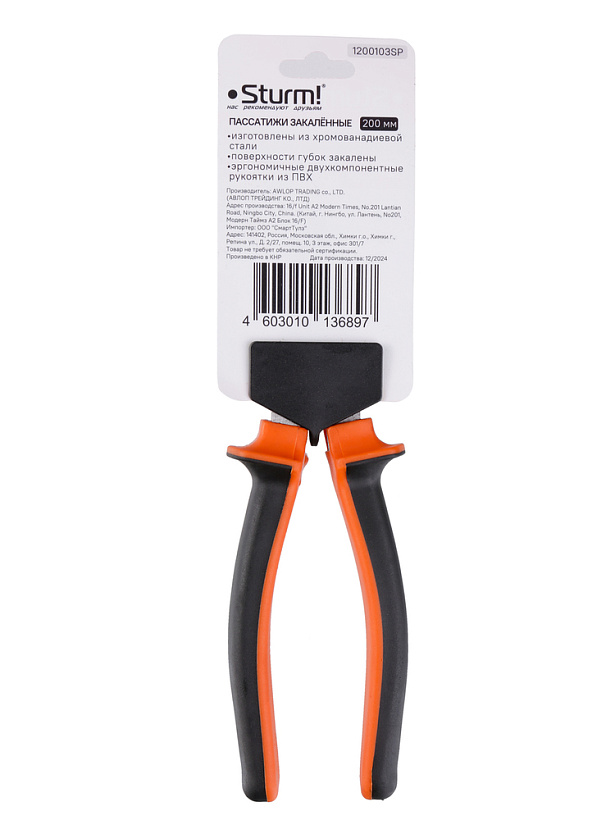 Пассатижи, 200мм, шлифованные, CrV,Sturm!
