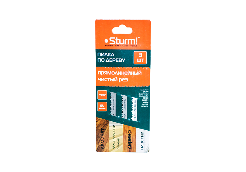 3. Полотна "STURM!" имеют европейский (EU) хвостовик, что позволяет их использовать для электролобзиков торговых марок STURM!, Энергомаш, Союз, Baumaster, AEG, Bosch, Hitachi, Makita, Metabo.