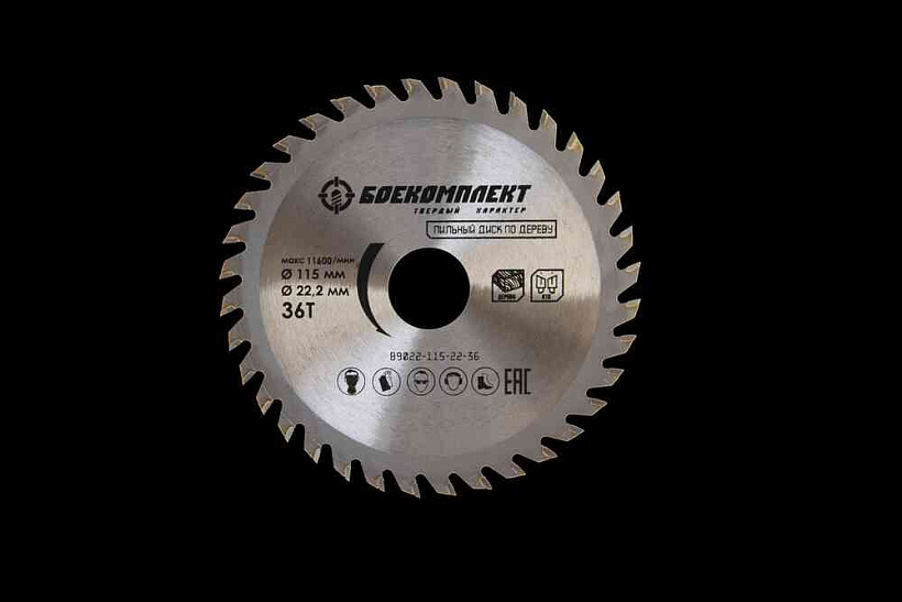 Пильный диск по дереву 115x22,23мм, 36 зубьев, БОЕКОМПЛЕКТ