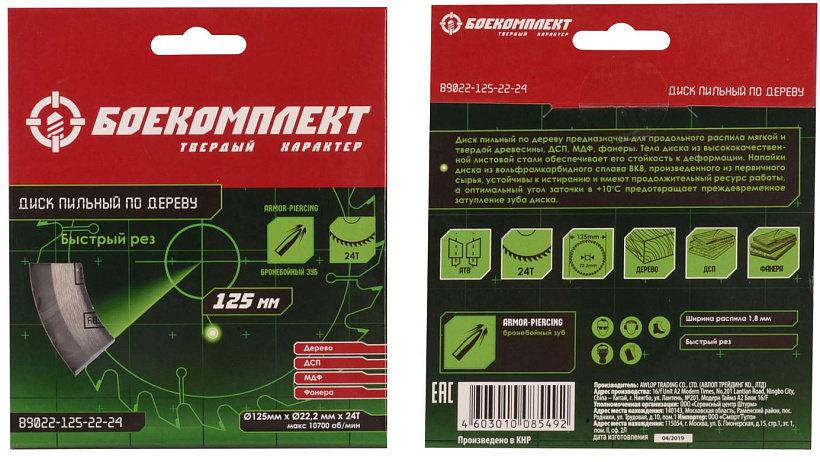 Чистый рез! При работе данным диском потребление мощности на 30% МЕНЬШЕ, что продлевает срок службы электроинтрумента!Тело диска из высококачественной листовой стали обеспечивает его стойкость к деформации. Напайки диска из вольфрамкарбидного сплава ВК8, произведенного из первичного сырья, устойчивы к истиранию и имеют продолжительный ресурс работы, а оптимальный угол заточки в +10 ̊C предотвращает преждевременное затупление зуба диска.