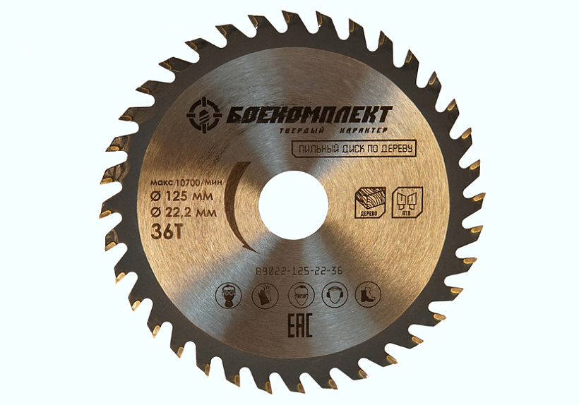 Пильный диск по дереву 125x22,23мм, 36 зубьев, БОЕКОМПЛЕКТ