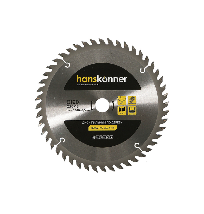 Пильный диск по дереву 190x20/16мм, 48 зубьев, Hanskonner