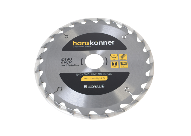 Пильный диск по дереву 190x30мм, 24 зубьев, Hanskonner