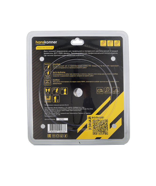 Пильный диск по дереву 200x32/30мм, 36 зубьев, Hanskonner