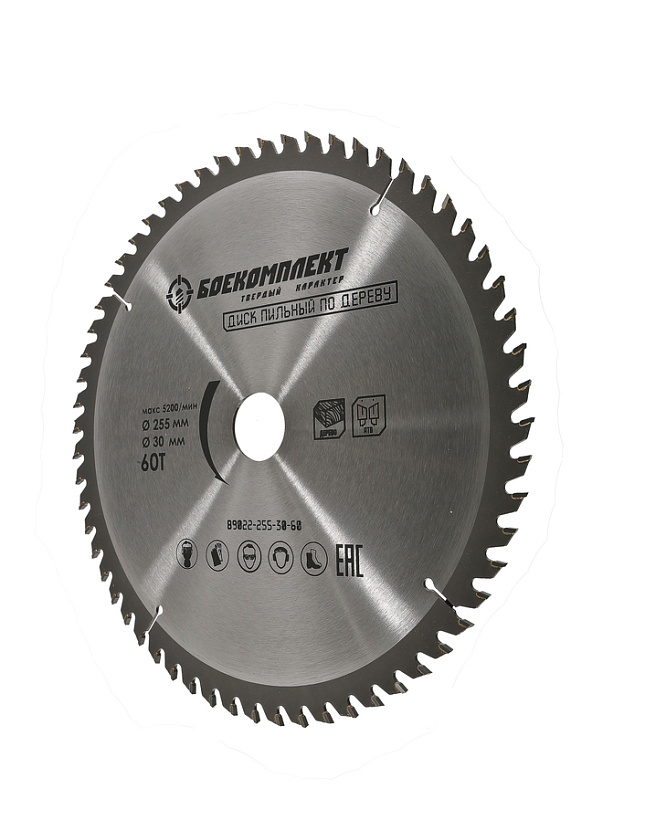 Пильный диск по дереву 255x30мм, 60 зубьев, БОЕКОМПЛЕКТ