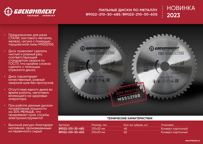 Пильный диск по СТАЛИ 210x30мм, 48 зубьев, БОЕКОМПЛЕКТ