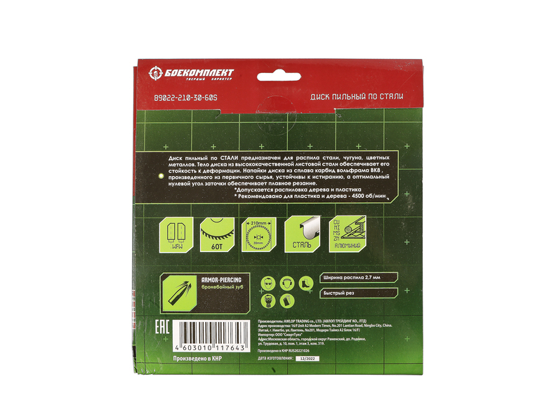 Пильный диск по СТАЛИ 210x30мм, 60 зубьев, БОЕКОМПЛЕКТ