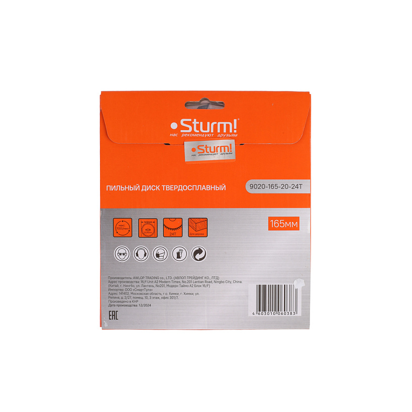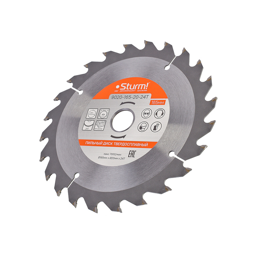 Пильный диск, размер 165x20/16x24 зуба, твердосплавные напайки Sturm!