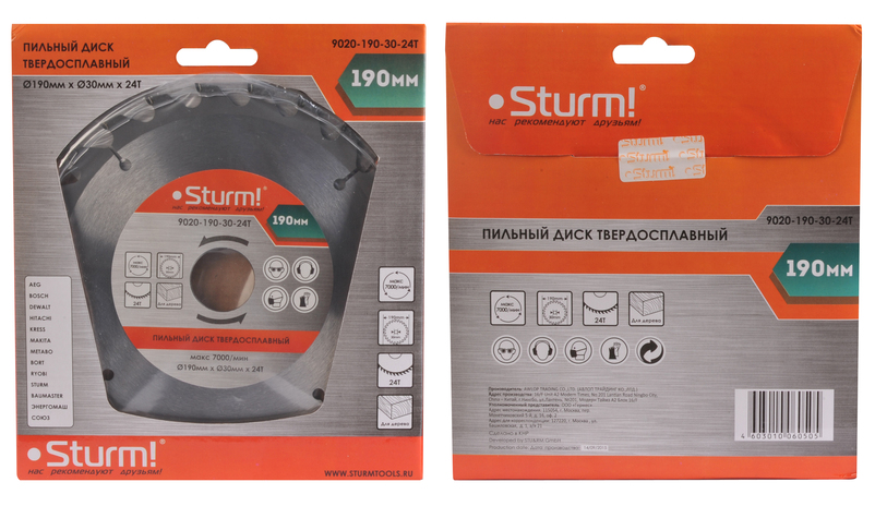 Пильный диск, размер 190x30x24 зуба, твердосплавные напайки Sturm!
