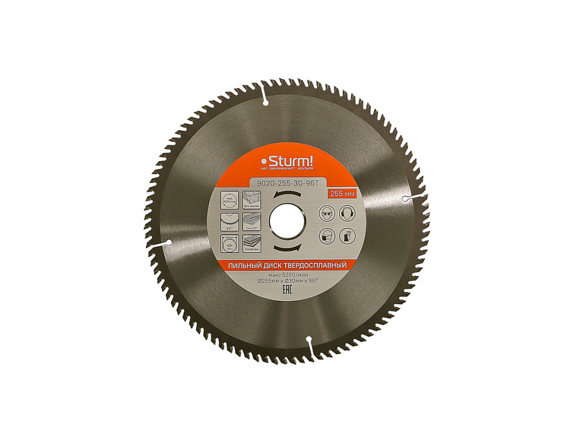 Пильный диск, размер 255x30x96 зубьев, твердосплавные напайки Sturm!