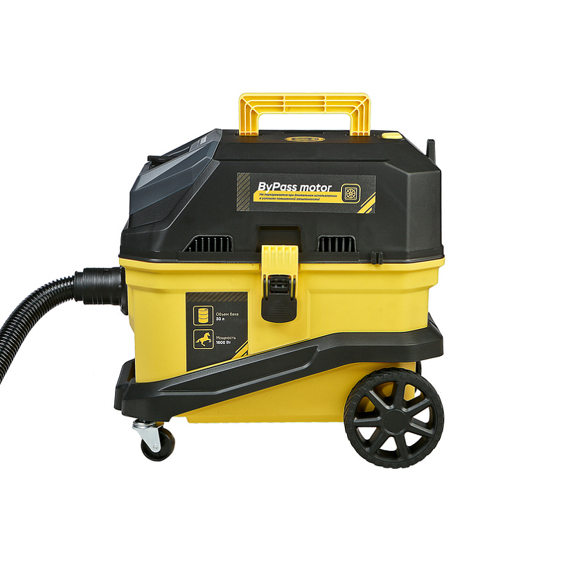 Модель оснащена байпасным 1600 Вт электромотором с внешним охдаждением, позволяющему добиться высоких показателей по скорости воздушного потока и разрежению на входе – это способствует быстрому и эффективному удалению мусора, и пыли.