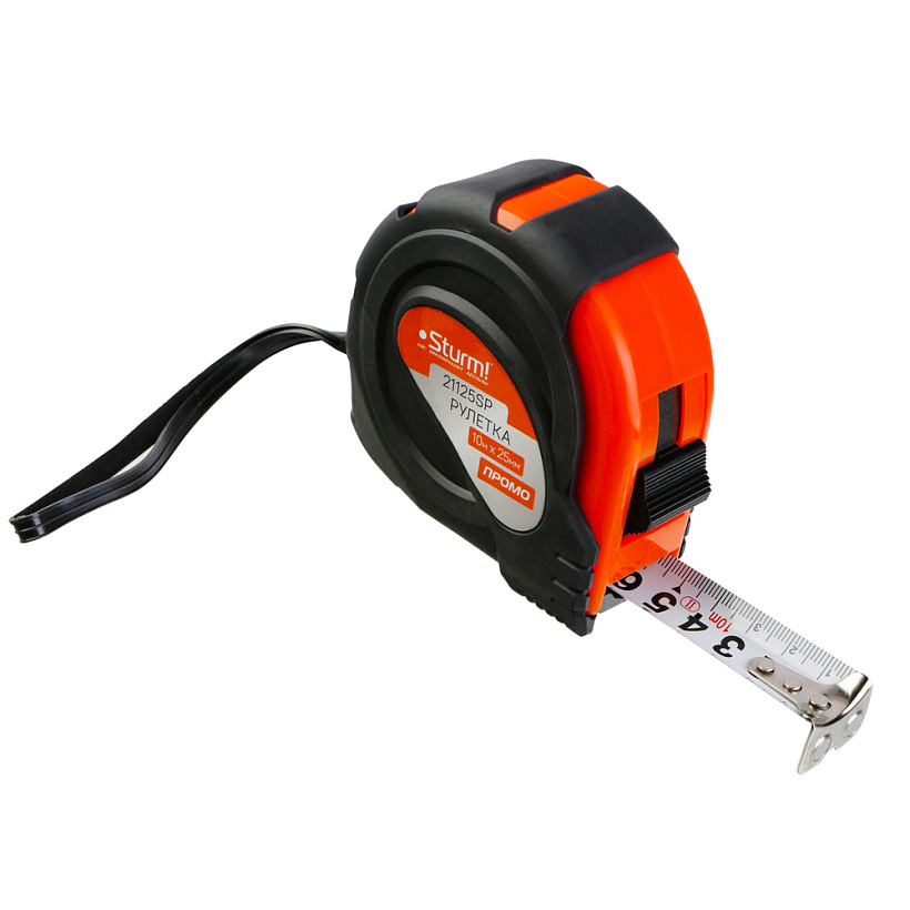 Рулетка 10x25мм, обрезиненная, магнит на зацепе, Sturm!