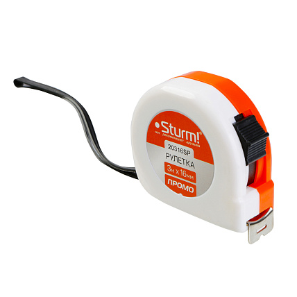 Рулетка 3х16мм, пластиковый корпус, Sturm!