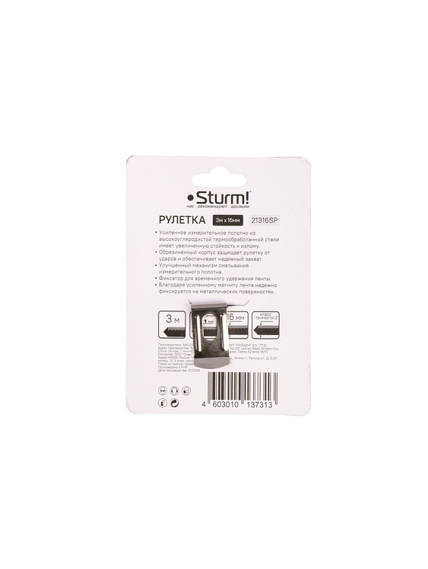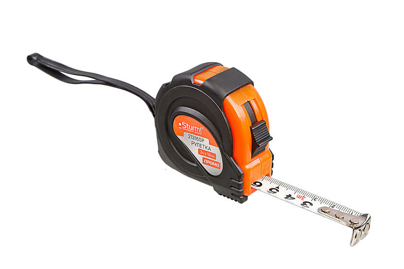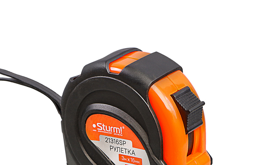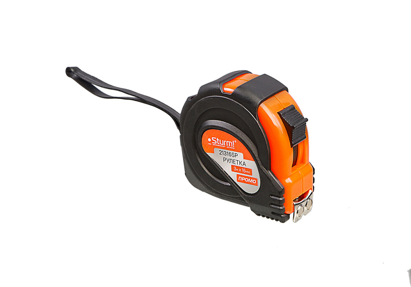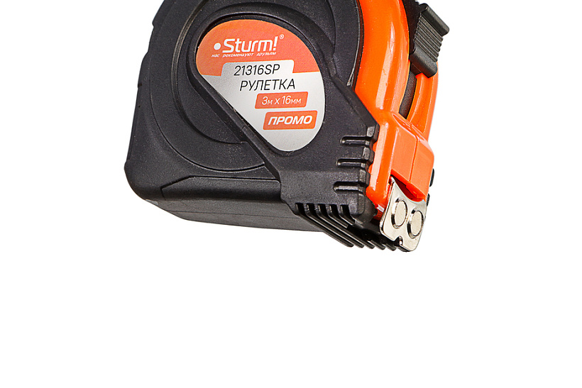 Рулетка 3x16мм, обрезиненная, магнит на зацепе, Sturm!
