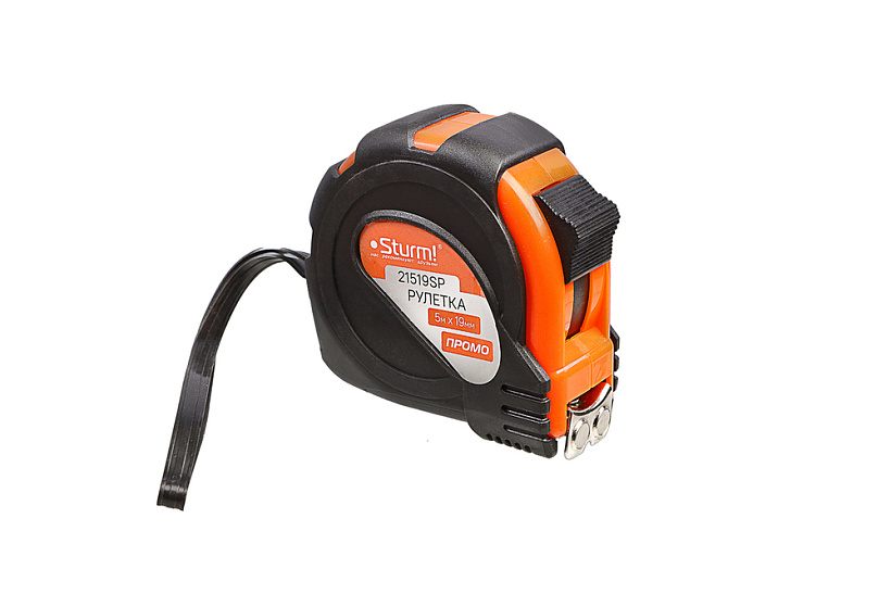 Рулетка 5x19мм, обрезиненная, магнит на зацепе, Sturm!