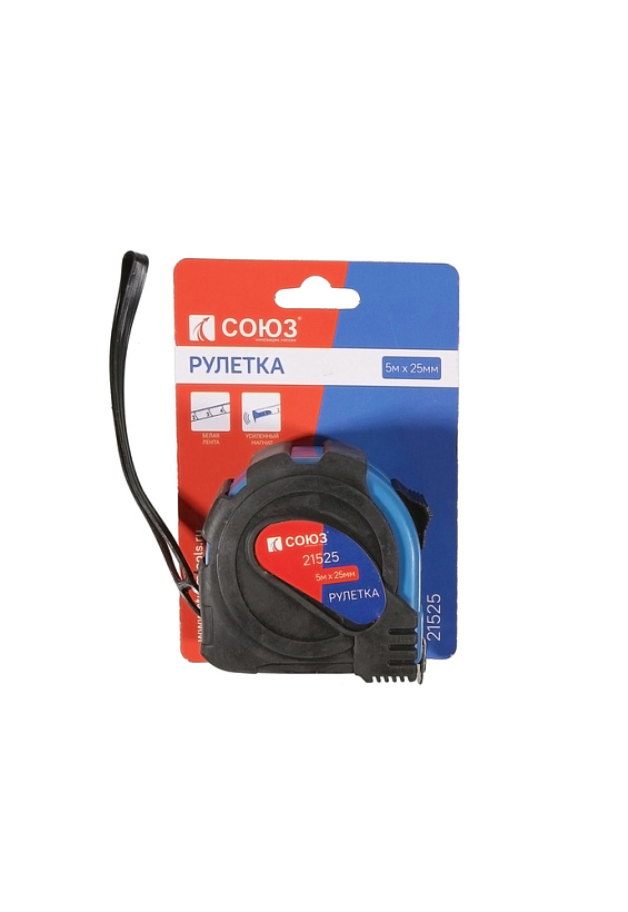 Рулетка 5x25мм, обрезиненная, магнит на зацепе, СОЮЗ