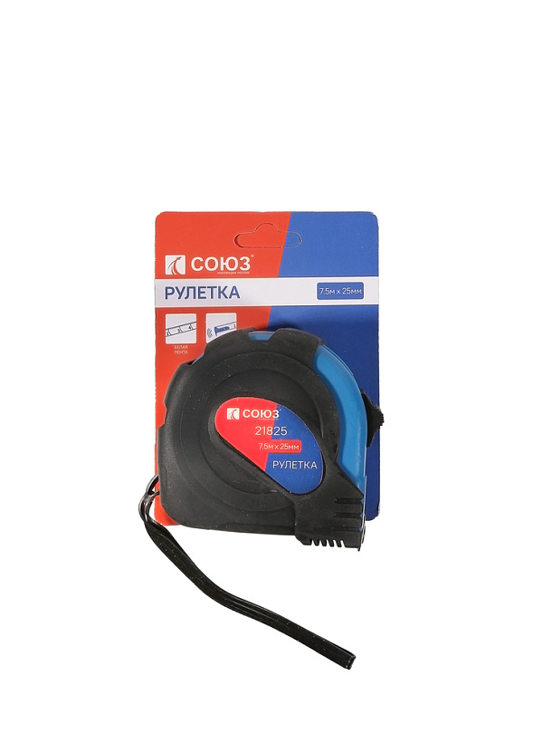 Рулетка 7,5х25мм, обрезиненная, магнит на зацепе, СОЮЗ
