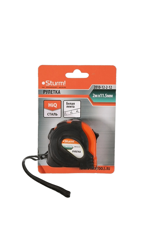 Рулетка мини 2x11.5мм, обрезиненный корпус, Sturm!