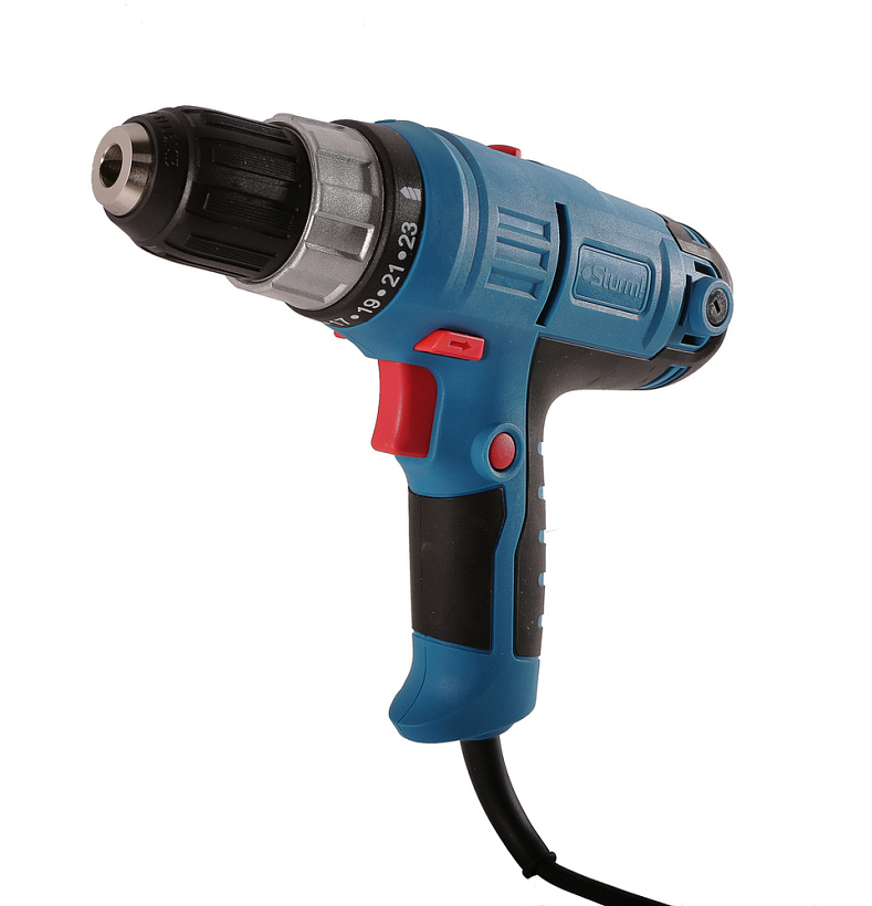 Sturm ID2145P – универсальный двухскоростной сетевой шуруповерт профессиональной серии инструмента Sturm. В сравнении с бытовыми DIY моделями обладает лучшей надежностью и ресурсом. Инструмент оснащен производительным 450 Вт электромотором и мощным планетарным механизмом, который обеспечивает высокие показатели по крутящему моменту (макс. крутящий момент 45 Н м), позволяя эффективное использование при работах с крепежом средней и большой длины. Модель имеет две скорости: режим пониженных оборотов (0 – 400 об / мин) предназначен для работ с крепежом, режим повышенных оборотов (0 – 1600 об / мин) – для сверления отверстий в различных материалах. Предусмотрена муфта регулировки усилия с 23 фиксированными ступенями и возможностью полной блокировки (режим сверления) – с ее помощью пользователь может максимально точно настроить нужный момент затяжки. Важной особенностью шуруповерта является функция блокировки вала шпинделя – благодаря ей достигается быстрота замены оснастки, а также реализуется мягкое докручивание крепежа. Благодаря оптимальным массово-габаритным показателям, выверенной эргономике и проработанной конструкции модель удобна в использовании: нейтральный центр тяжести обеспечивает лучший контроль инструмента, резиновые накладки на корпусе гарантируют надежность хвата, возможность фиксации клавиши пуска способствует комфорту при длительных работах, наличие длинного четырехметрового сетевого кабеля повышает мобильность инструмента, исключая необходимость применения дополнительного удлинителя. Для удобства обслуживания предусмотрен быстрый доступ к щеткам, позволяющий производить их замену без демонтажа элементов корпуса.