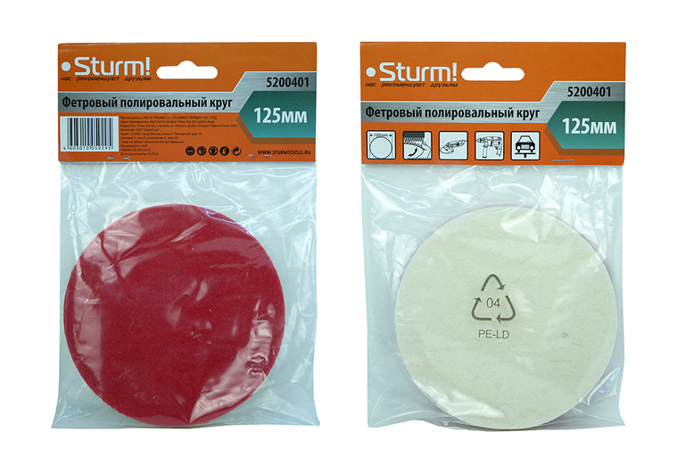 Круг фетровый полировальный "под липучку", D125, толщ. 10мм, Sturm!