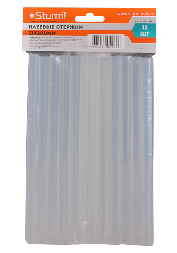 Клеевые стержни для пистолета, 11х200мм, 12 шт, прозрачные, Sturm!