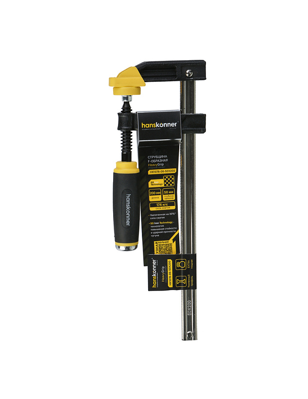 Струбцина F-образная, 50x200x255мм, усилие 174кгс, hanskonner