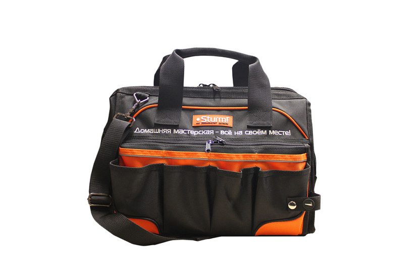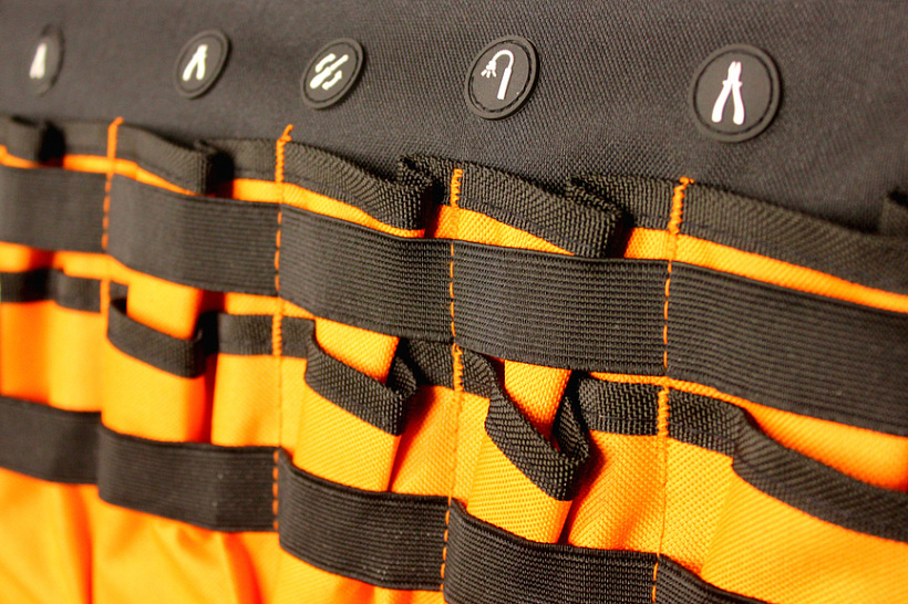 Уникальная сумка-органайзер позволяет удобно хранить и переносить инструментальный арсенал домашней мастерской. 43 кармана сумки, большинство которых имеет информационные пиктограммы, определяют эргономичное и грамотное размещение инструмента внутри, что позволяет быстро находить нужный инструмент. Расположение карманов и их размеры продуманы в мельчайших деталях;