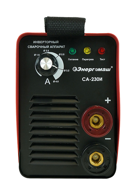 Сварочный инвертор Энергомаш СА-230И — компактный производительный аппарат с простым управлением и универсальным подключением.