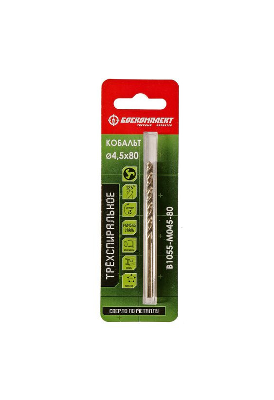 Сверло по металлу ТРЁХСПИРАЛЬНОЕ Кобальт 4,5х80мм БОЕКОМПЛЕКТ