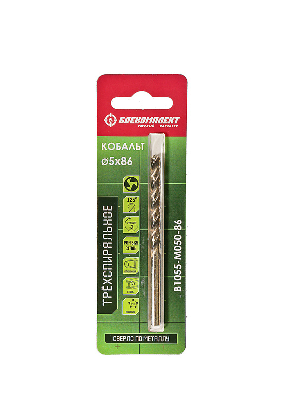 Сверло по металлу ТРЁХСПИРАЛЬНОЕ Кобальт 5,0х86мм БОЕКОМПЛЕКТ