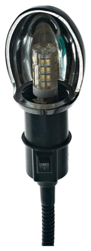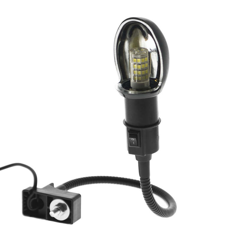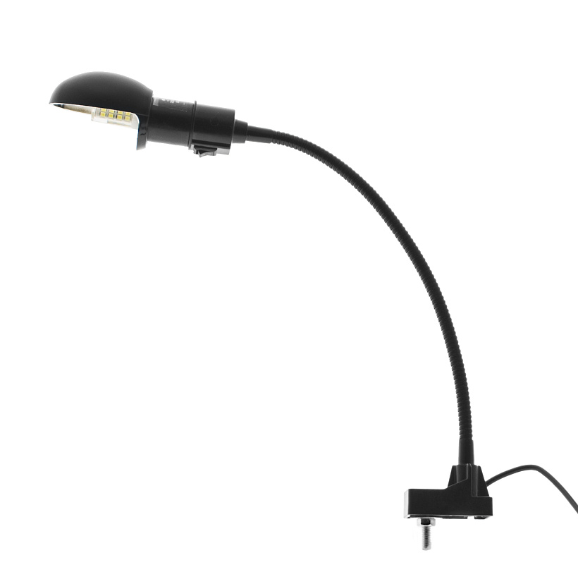- Гибкая металлическая стойка позволяет изменять направление подсветки в любую сторону из любого положения;