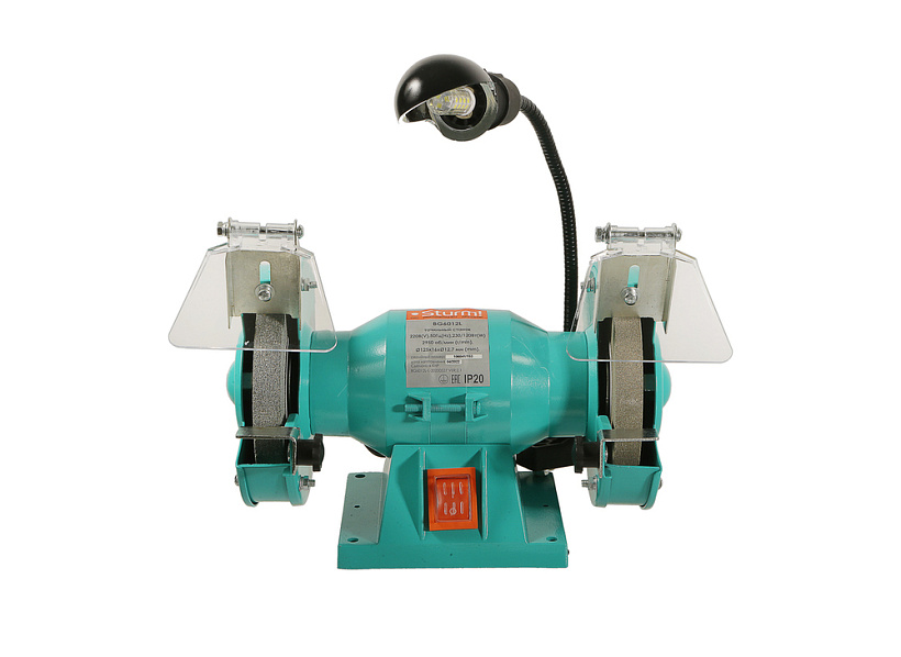 Независимая направляемая подсветка позволяет лучше контролировать качество заточки. Благодаря металлической гибкой ножке светодиодную лампу можно направить в любую точку и хорошо видеть не только рабочий процесс, но и использовать светильник для вспомогательного освещения как рабочую настольную лампу. Полимерный плафон закрывает светодиодный блок для его внешней защиты и предотвращает «засветку» глаз оператора.  (Кроме того, универсальные лампы подсветки Sturm! IWA30 и IWA50 продаются отдельно, чтобы все пользователи смогли оснастить ими свои рабочие места и оборудование).